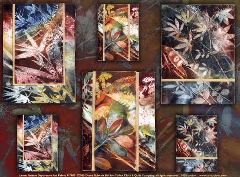 Description: Three collagraphic works in sensual deep tones are presented in in two sizes each.