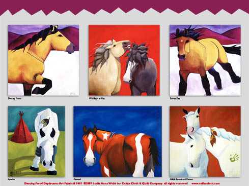 Description: Six colorful equine portraits. Clockwise from upper left: